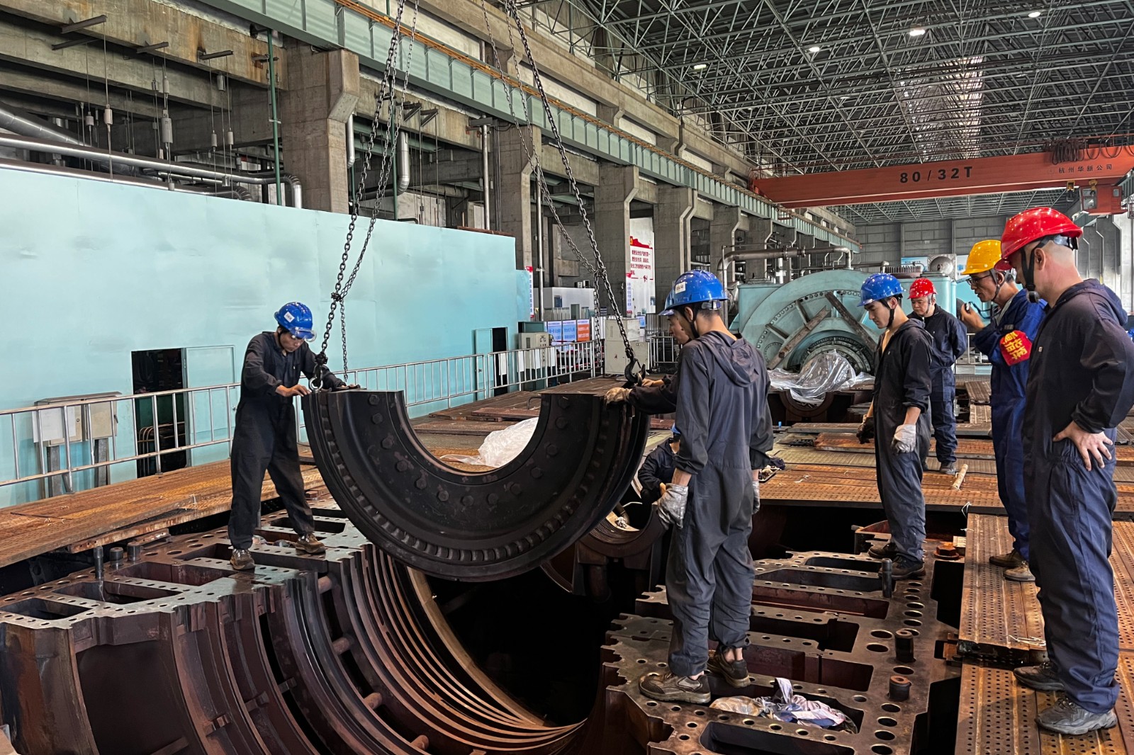 低壓缸扣蓋作業是汽輪機檢修中的關鍵節點,也關乎著修后設備的穩定運行。公司高度重視,提前謀劃部署,制定了詳細的安全技術措施,細化作業流程,明確人員職責。作業前,汽機專業組組織全體施工人員進行了全面的安全技術交底,對行車、吊具等專用工器具進行了嚴格檢查,對汽缸內、軸承室內所有封堵部位進行了全面排查,確保檢修工作萬無一失。作業過程中,技術人員科學調度,實時監控各部件的精準落位,嚴格控制各轉動部件間隙。在全體檢修人員的共同努力下,10月10日上午完成全部扣蓋作業,全過程安全可控,精準高效。