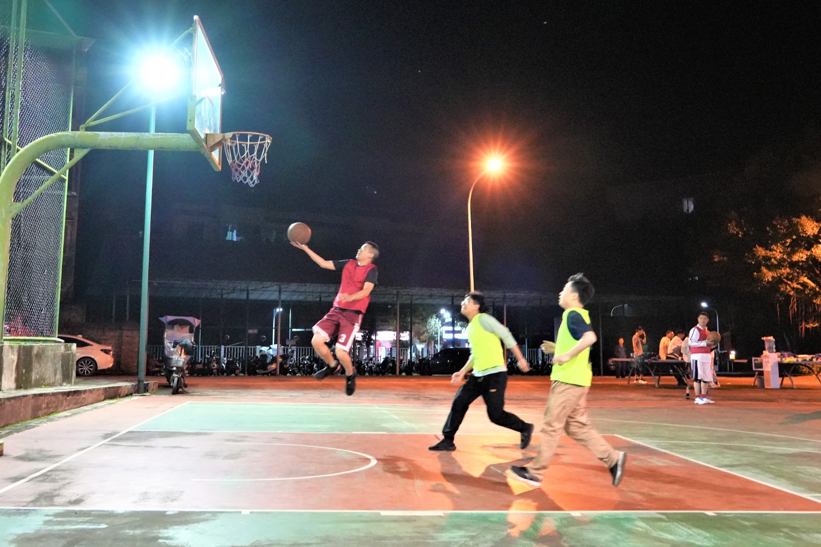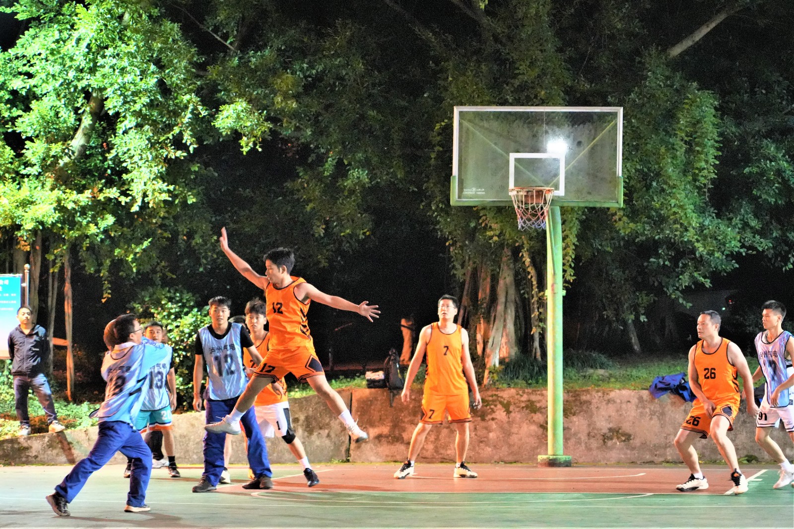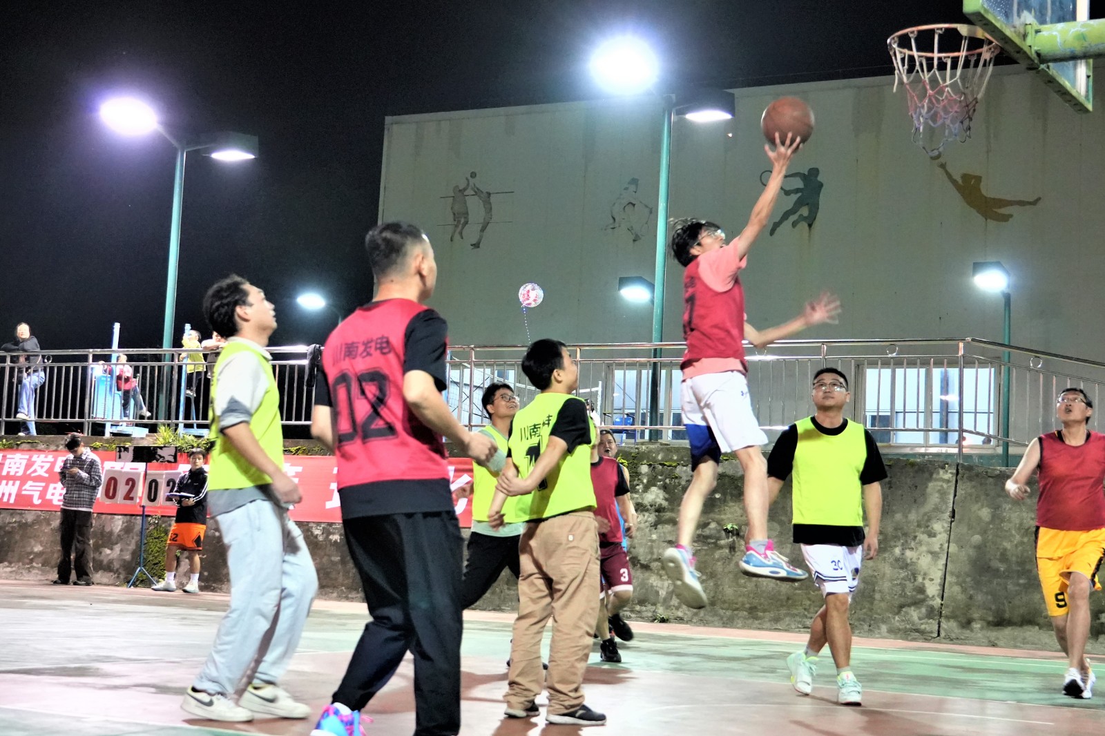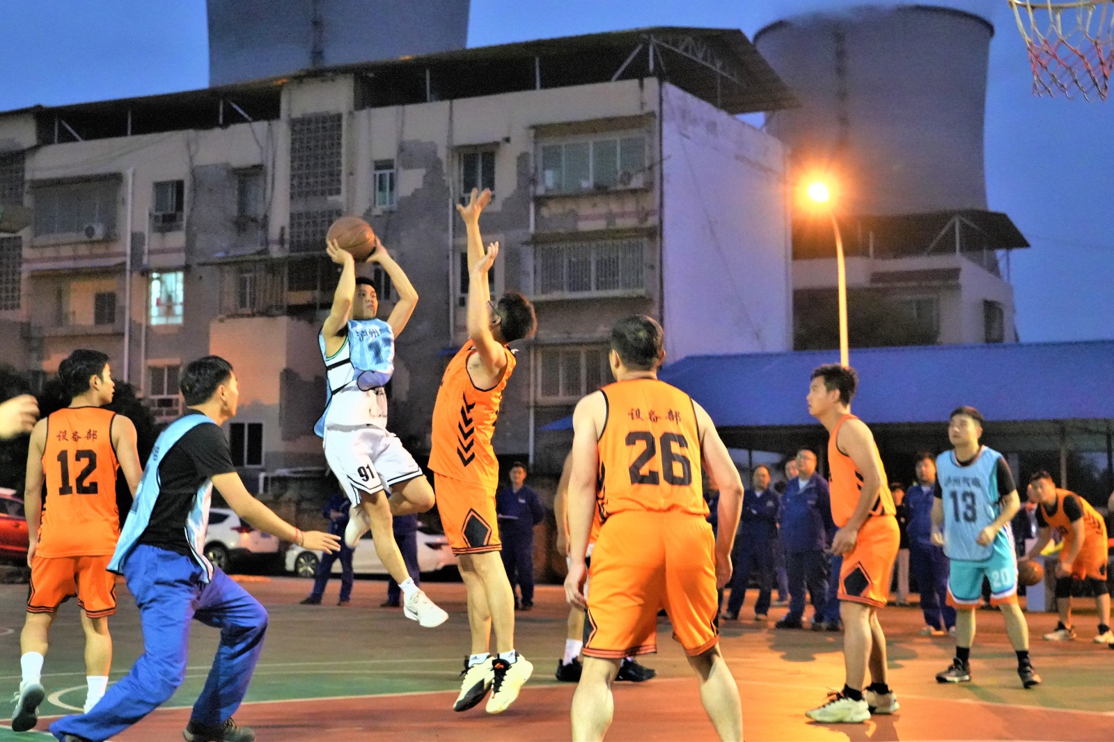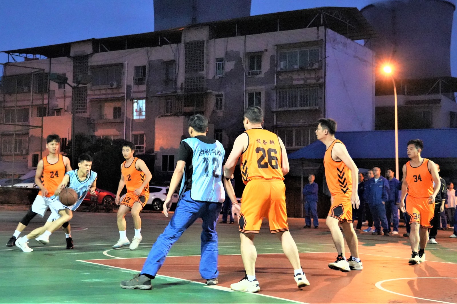 隨著裁判清脆哨聲劃破賽場,揭幕戰即刻打響。賽場瞬間化作激情碰撞的舞臺,參賽選手迅速進入競技狀態,攻防轉換間展開白熱化爭奪。帶球突破時的敏捷、默契傳遞中的精準、上籃投球時的果斷,球員們身手矯健。飛身搶斷的果敢、精準遠投的利落,每一個動作都緊緊牽動人心。在攻防中,籃球入網聲、球鞋摩擦聲、觀眾吶喊聲與隊友擊掌聲交織,奏響深秋里最激昂的旋律。揭幕戰中設備維修部一隊與瀘州氣電一隊的對決,更是將“協作”二字詮釋得淋漓盡致。面對瀘州氣電一隊的緊密聯防,設備維修部一隊中鋒穩穩卡位、前鋒靈活策應、后衛從容組織,多輪傳導間輕松撕開防線。而瀘州氣電一隊也以頑強防守回應,通過集體籃板拼搶多次創造反擊機會。“就像日常巡檢設備一樣,每個人都能找準位置、補好缺口”。